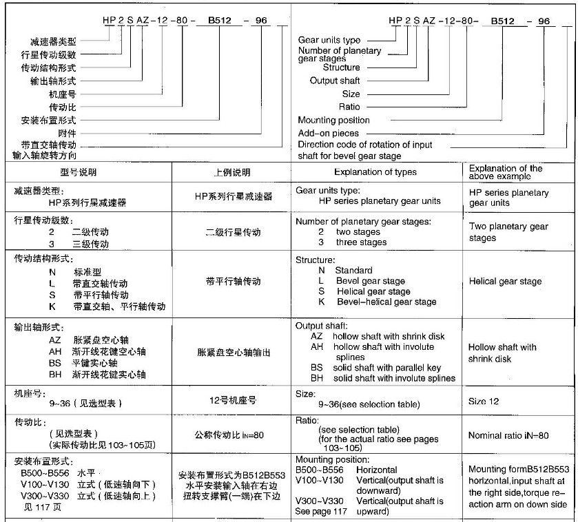 一 HP系列行星減速器型與標記