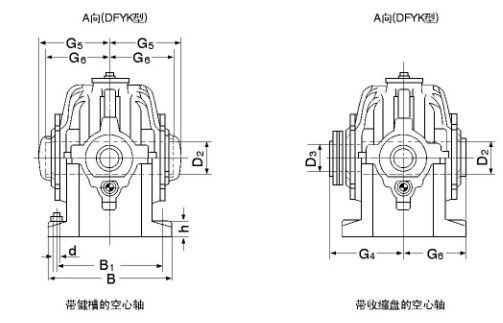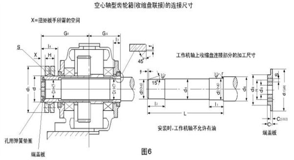 4.DFYK減速器空心軸用收縮盤聯(lián)接的連接尺寸見圖6、表16