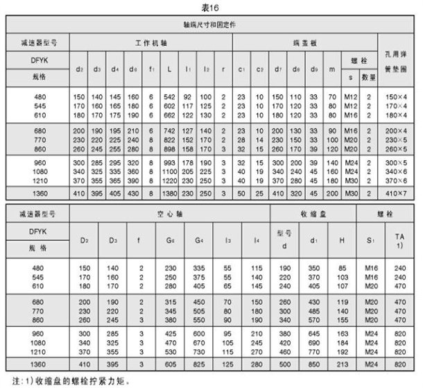 2D2、D3、G4、G5、G6及空心軸的連接尺寸見表15,表16。