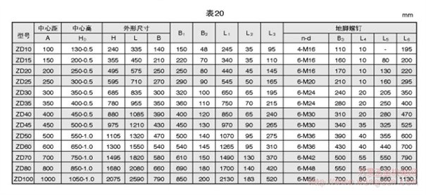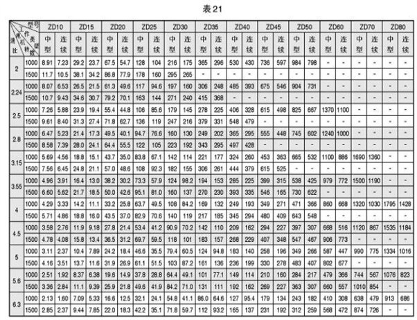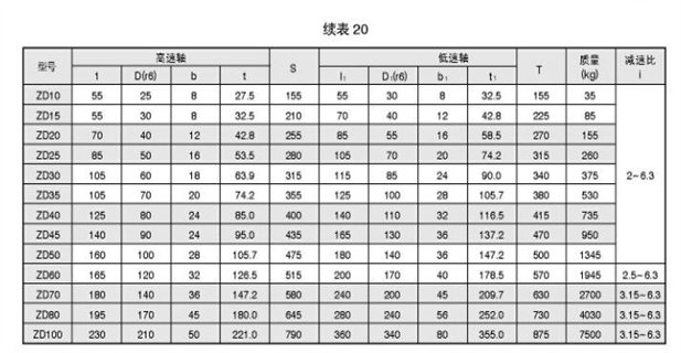 *本表僅列出在兩種不同的輸入轉數及工作類型的情況下,減速器高速軸的許用功率,其它轉數、類型、負荷性質可近似地參考此表,但應注意,當每一循環的工作時間t工作>20分鐘時,應接連續型選用。